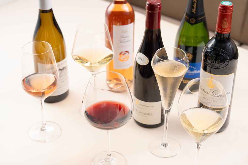 シャンパーニュ1glass+赤、白ワイン(各50cc)をコースの品数に合わせて提供します。